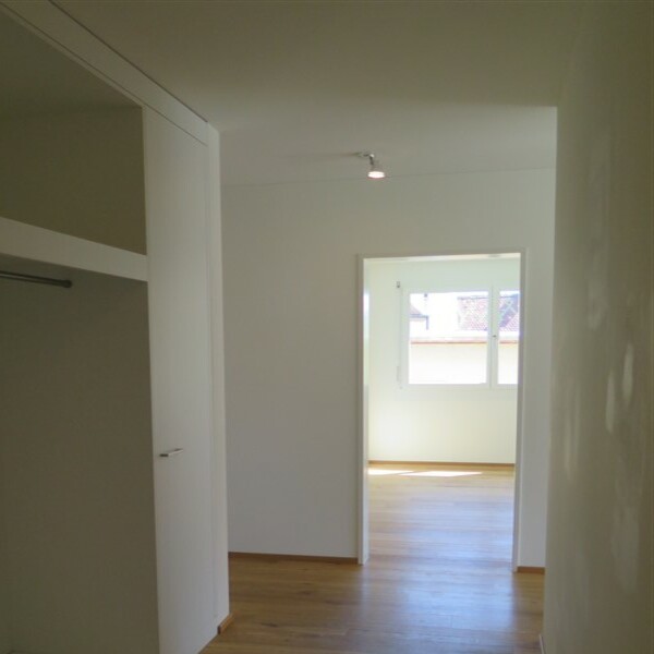 Der Grundriss der 4.5 Zimmerwohnung überzeugt mit einem grosszügigen und hellen Wohn- und Balkonbereich, zwei Nasszellen sowie einem Réduit mit Waschmaschine/Tumbler. Die Böden sind mit Parkett belegt und der Innenausbau befindet sich in einem guten Zustand. Zu der Wohnung gehört ein Kellerabteil und es besteht die Möglichkeit, 1 bis 2 Autoeinstellplätze in der Tiefgarage zu erwerben (CHF 40'000.- pro Platz). Im Haus befindet sich zudem noch ein Trocknungsraum und ein grosser Fahrradraum. Insgesamt hat es 12 Eigentumswohnungen. Die Liegenschaft wurde im 2017 fertiggestellt und die Wohnung wurde bis jetzt vermietet.