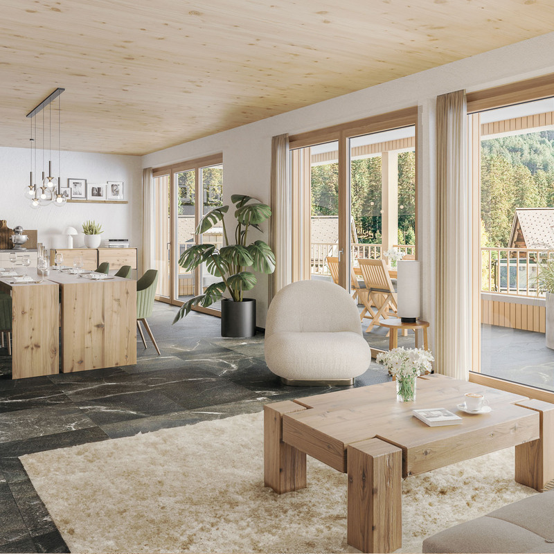 Die 4.5 Zimmer-Wohnungen sind nach Süden ausgerichtet mit einer wunderschönen Weitsicht. Diverse Holzbauteile verleihen den Wohnungen einen bestimmten Wohlfühlcharakter. Der Innenausbau ist hell und modern und die vielseitig eingerichtete Küche bietet viel Platz. Zusammen mit zwei Nasszellen und einem eigenen Waschturm bilden diese Wohnungen ein perfektes Ferienrefugium. Zu jeder Wohnung kann ein Doppel-Autoeinstellplatz in der Garage erworben werden.