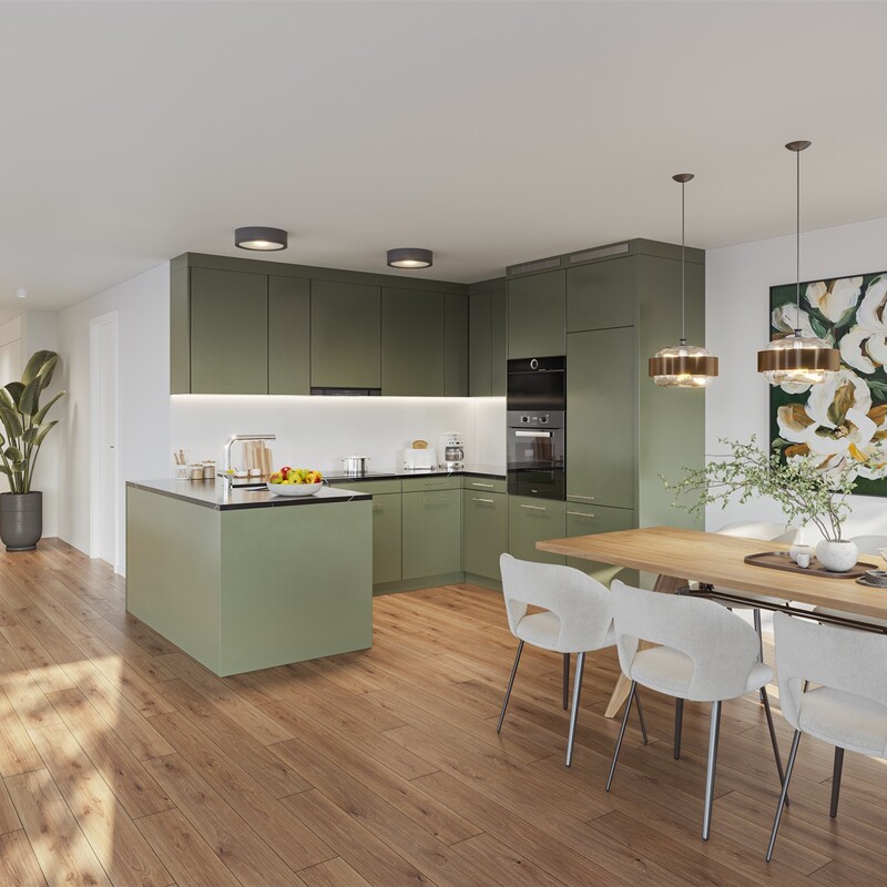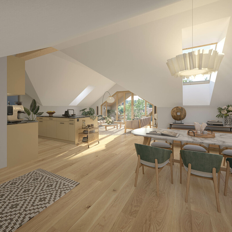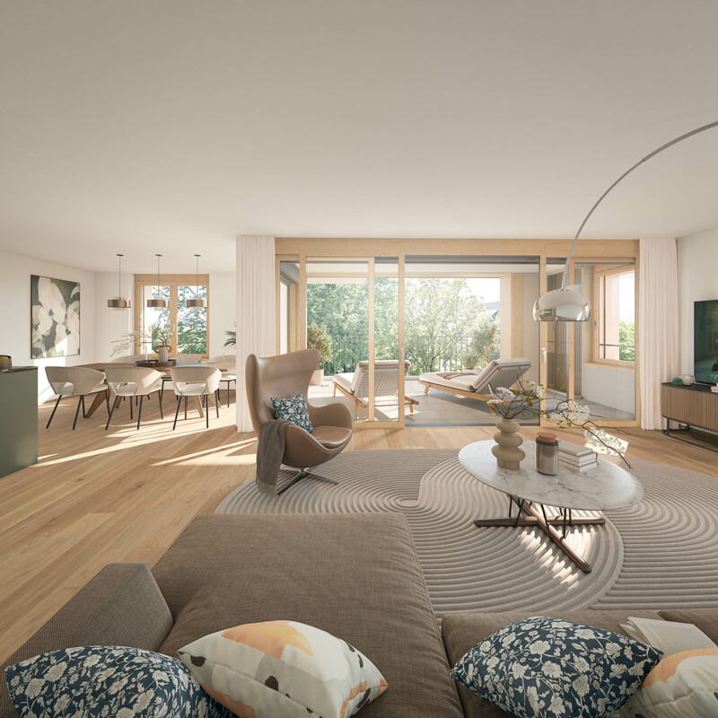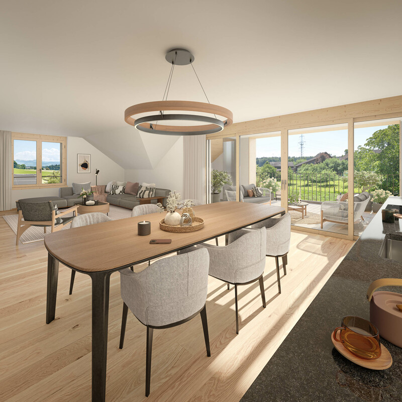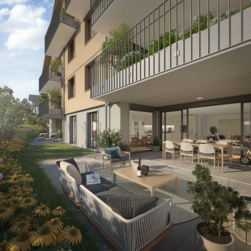 Insgesamt entstehen in den zwei Mehrfamilienhäuser A und B 16 grosszügige und moderne 3.5 - 5.5 Zimmer Eigentumswohnungen. Die Wintergärten sind mit rahmenlosen, mobilen Glaselementen ausgestattet und gehen schwellenlos in den Balkonbereich über. Hier lässt sich der Feierabend gut geniessen!