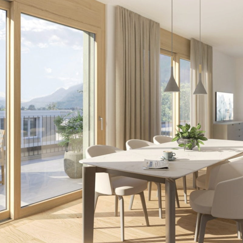 Die Grundrisse der modernen und hellen 2.5- bis 5.5-Zimmerwohnungen haben eine praktische und doch individuelle Einteilung. Eine individuell regulierbare kontrollierte Lüftung, ein Reduit mit Waschmaschine / Tumbler sowie eine Kühlmöglichkeit über das Bodenheizsystem für den Sommer sorgen zudem für einen hohen Wohnkomfort.