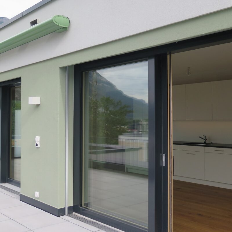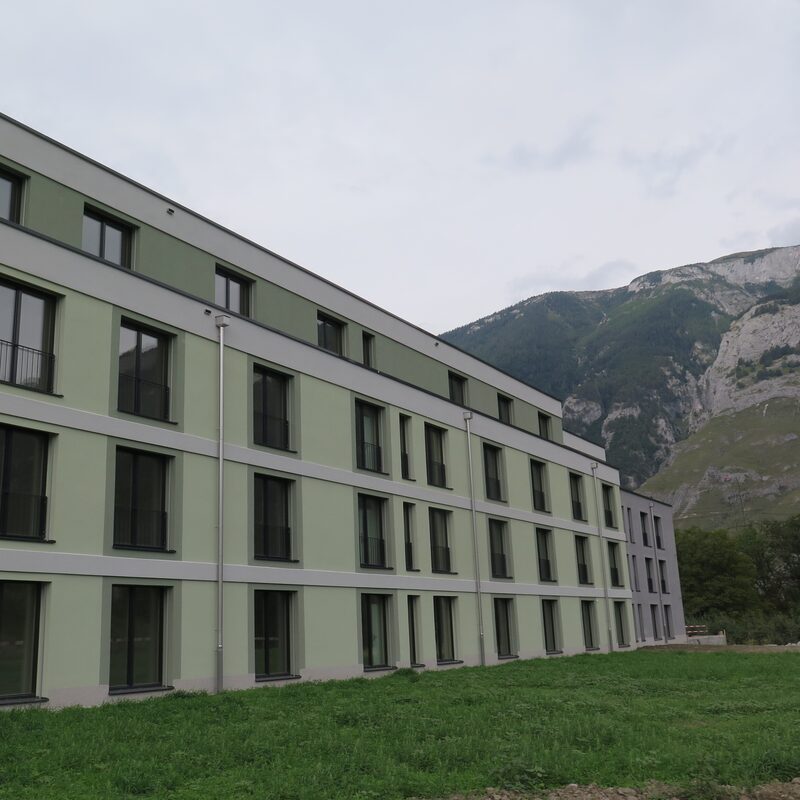 Das Mehrfamilienhaus "Im Grünen" ist sehr ruhig und naturnah gelegen. Die Wohnungen verteilen sich auf 3 Hauseingänge sowie 4 Etagen und sind vorwiegend nach Südwesten ausgerichtet. In den oberen Etagen sowie Richtung Norden bietet die Bündner Berglandschaft eine herrliche Kulisse.